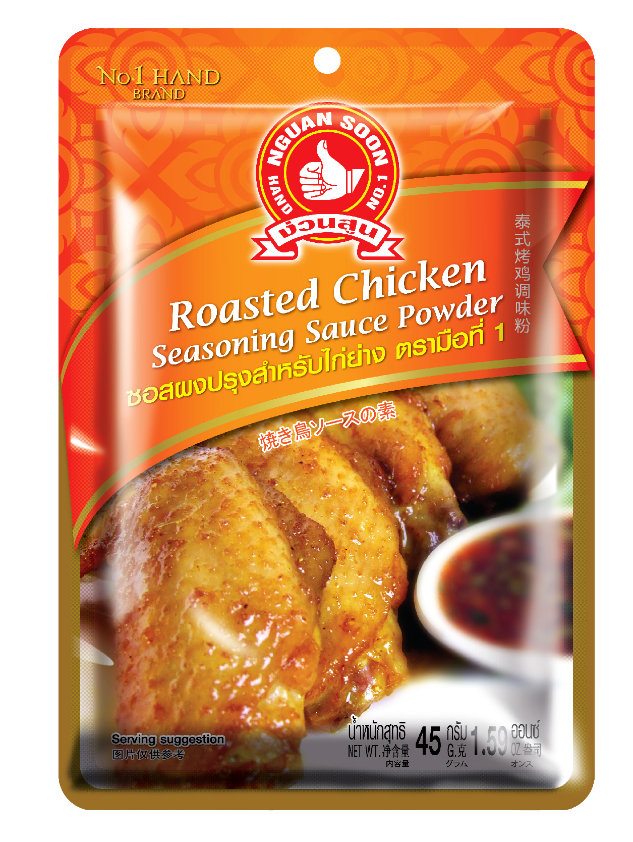 1.นำผงปรุงไก่ย่าง 1 ซอง (45 กรัม) ละลายน้ำ 3 ช้อนโต๊ะ เติมน้ำมันพืช 3 ช้อนโต๊ะ